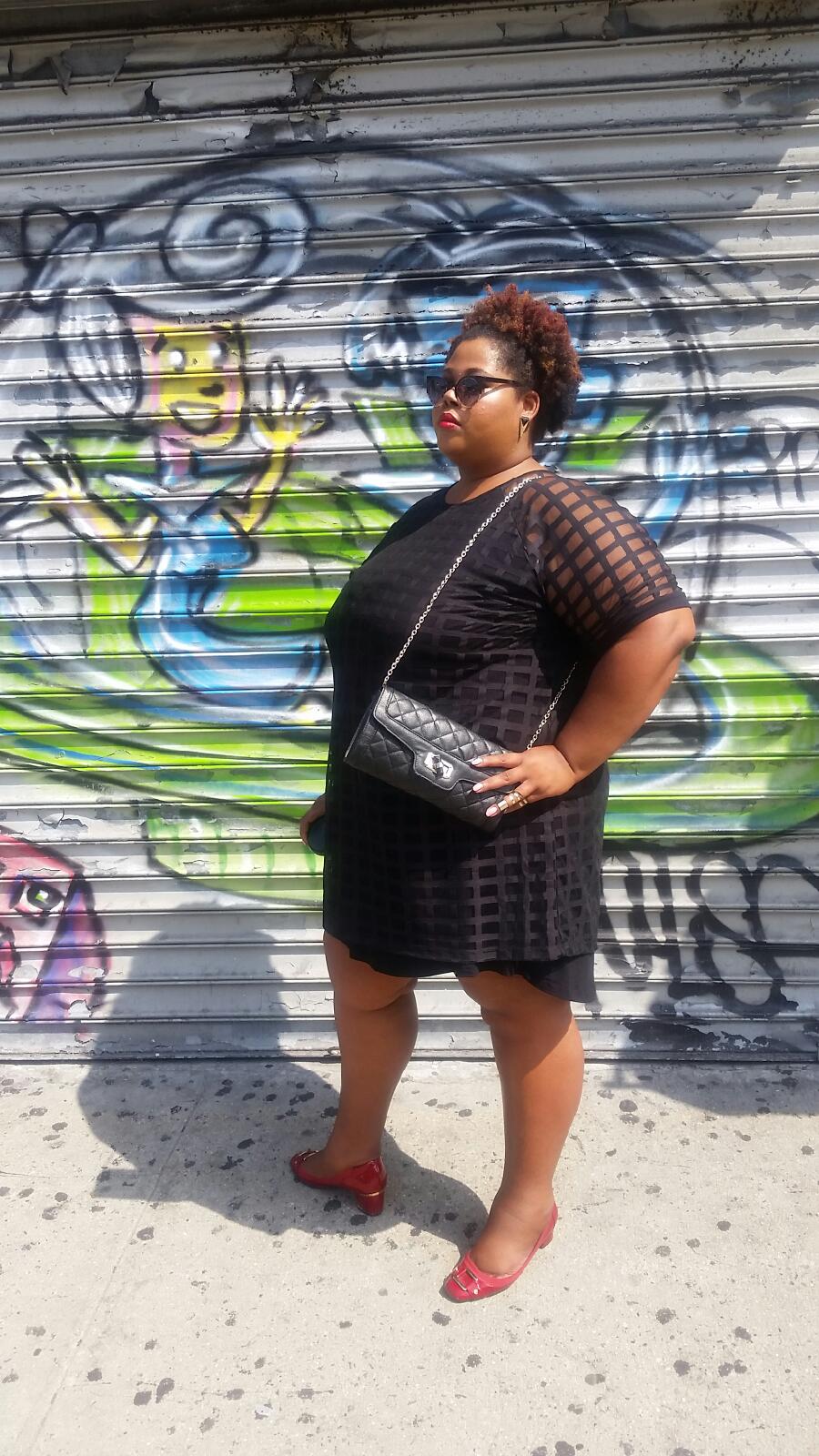 I was thrilled to rock my ASOS CURVE Exclusive Shift Dress In Cage Mesh, which was perfectly breezy in the humid weather! My ONLY complaint is that the slip was not attached to the dress, and it was hanging below the mesh part of the dress (hemline), which was a bit sloppy-looking, but apparently it did not “look too bad,” according to a few friends and all the bloggers at the event. (They were only trying to be nice – bless their hearts.) While I wish the slip was even with the mesh, if it were, then the dress may have been a little hoochie, right? Luckily, because of my shape, this worked for me; however, I do not know if I could recommend this for those who are pear shaped or not – I guess it would depend on her height. I believe this dress would also be darling with tights, and could be transitioned into a winter dress.