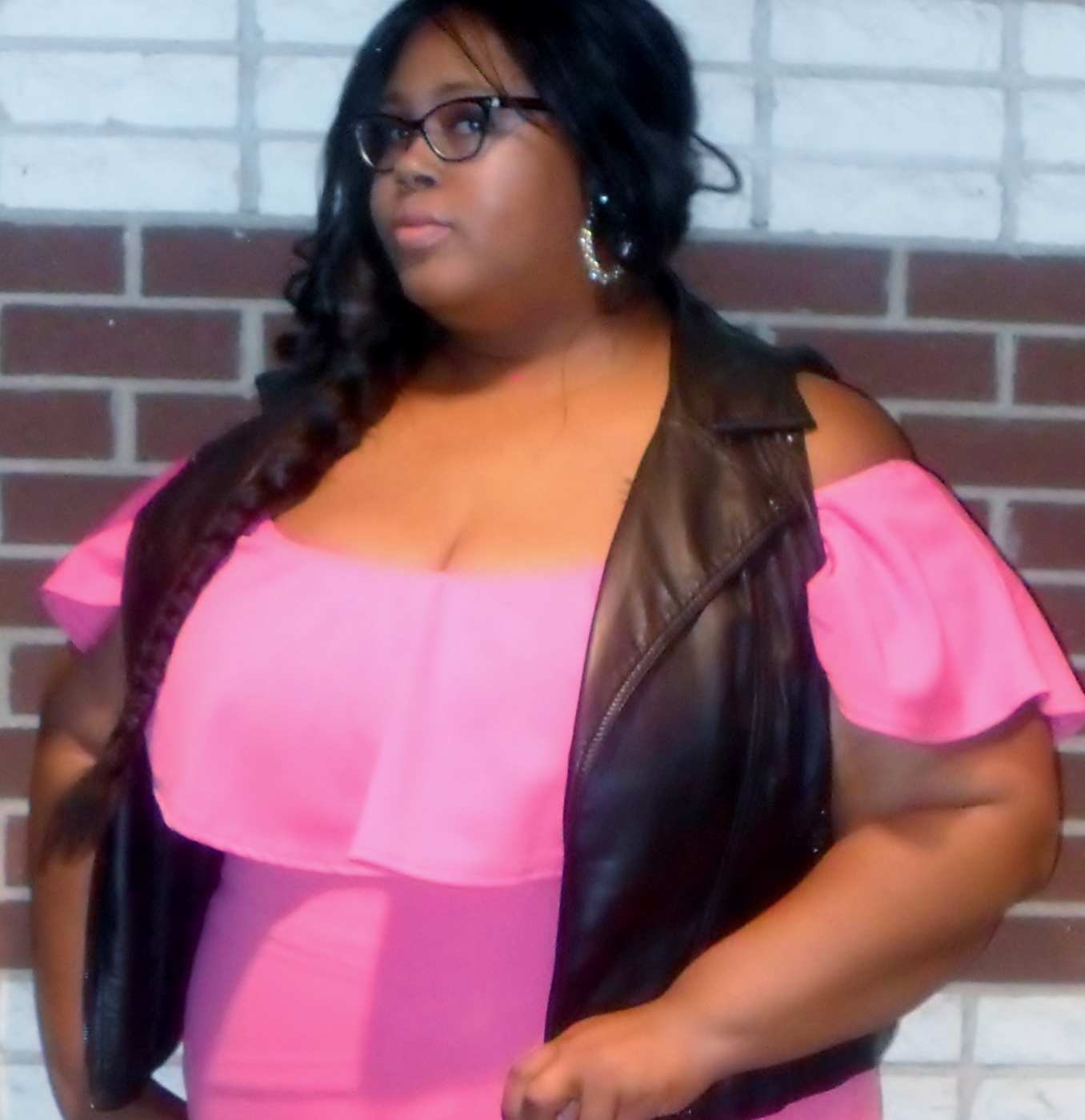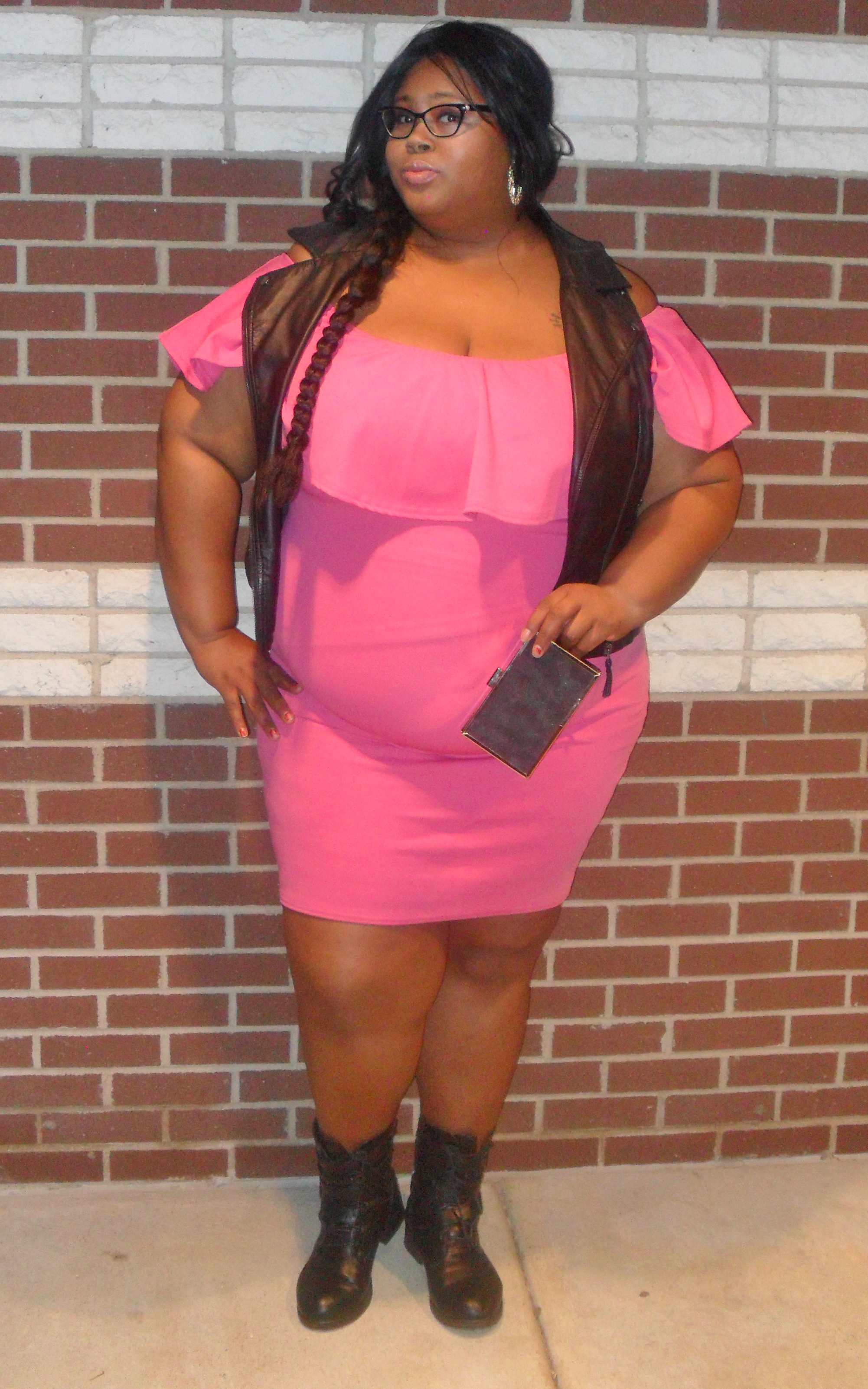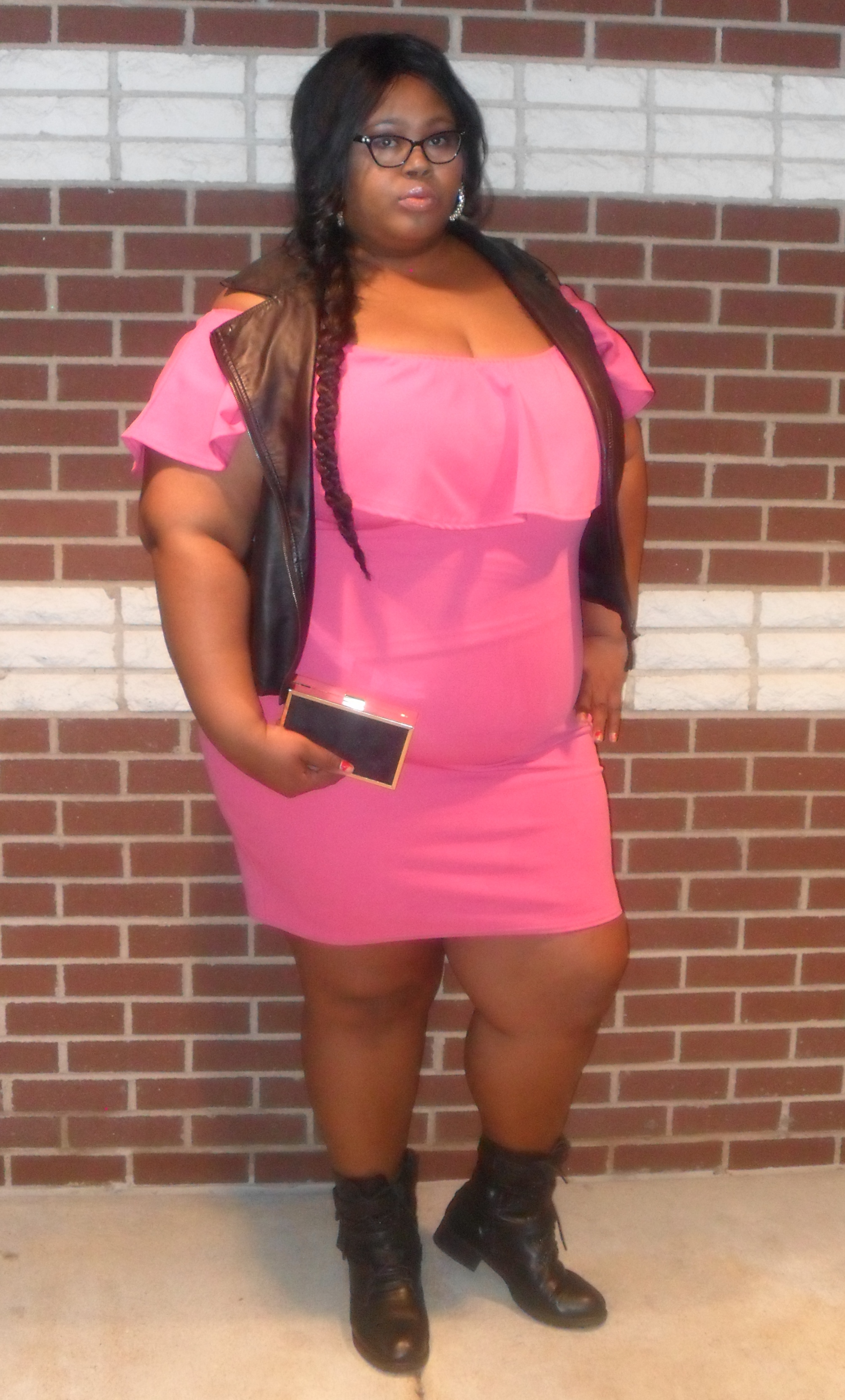 I decided to pair this with a faux leather motto vest (similar here) and combat boots from Torrid. The faux leather balanced out this ultra feminine look – making it more casual.
