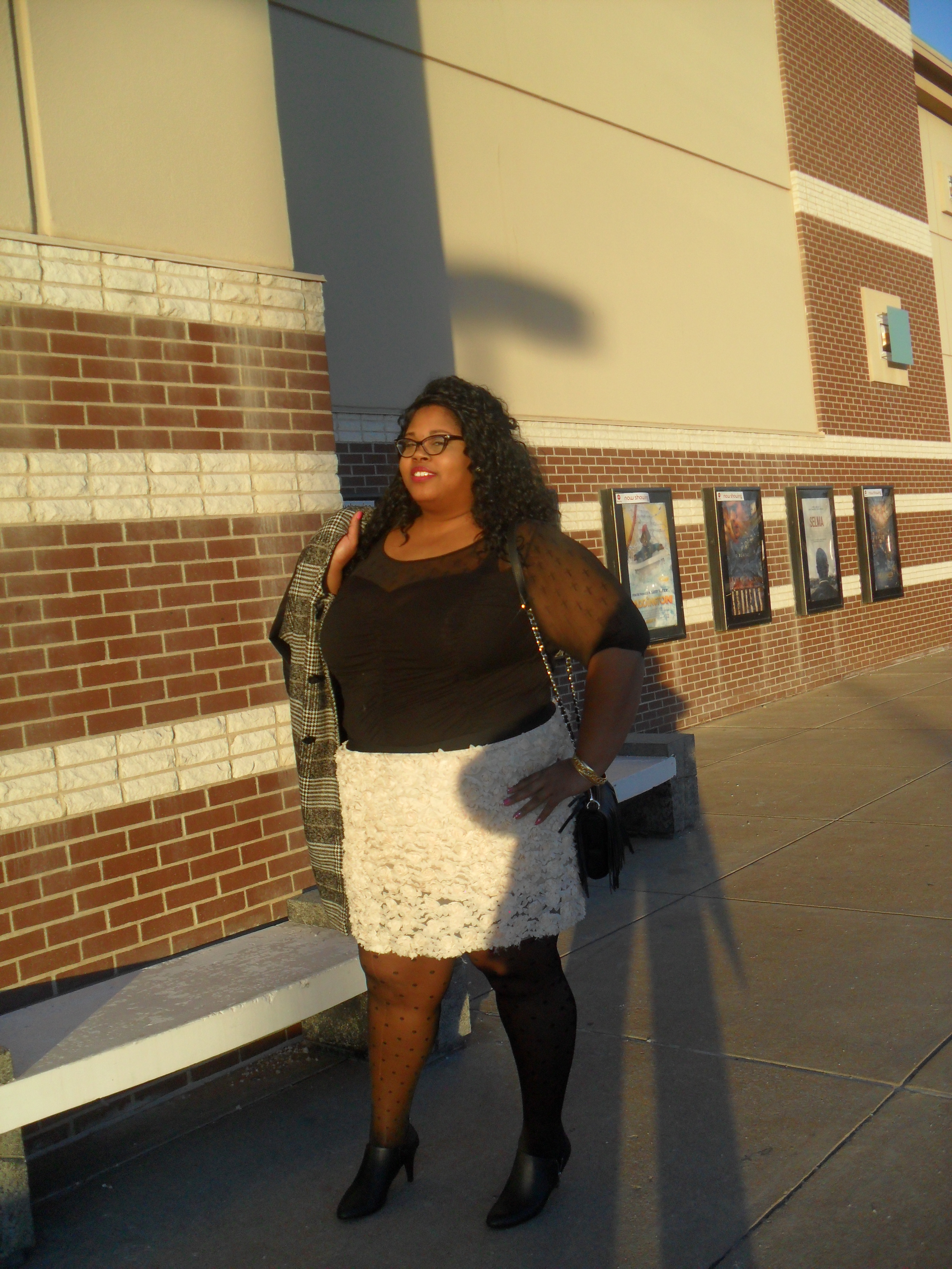The skirt kind of went with the feminine, romantic feel of the tights… The shirt, though: I loved the style, even though the print of the mesh kind of clashed. I liked it – it created an interesting, modern appeal.