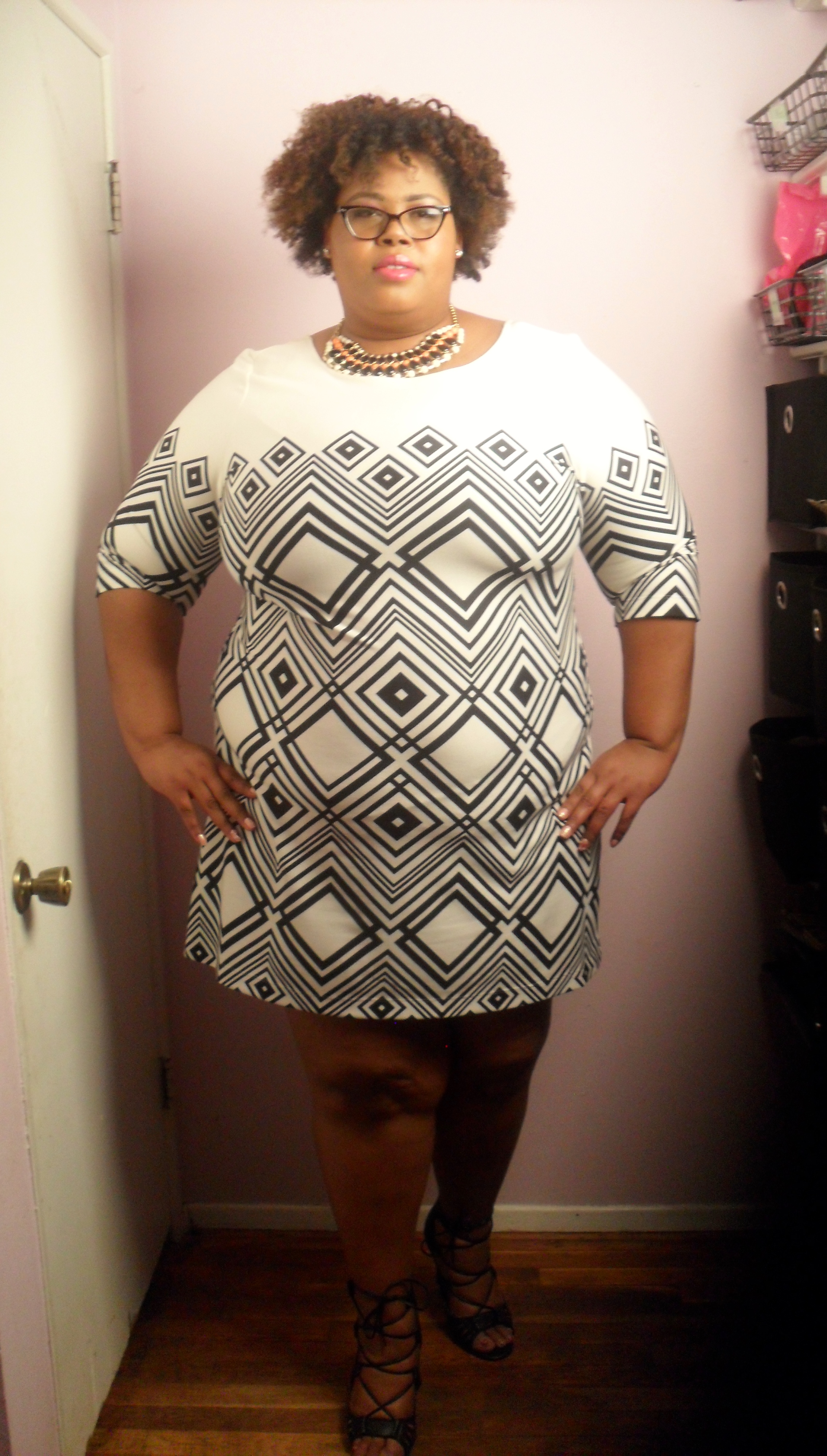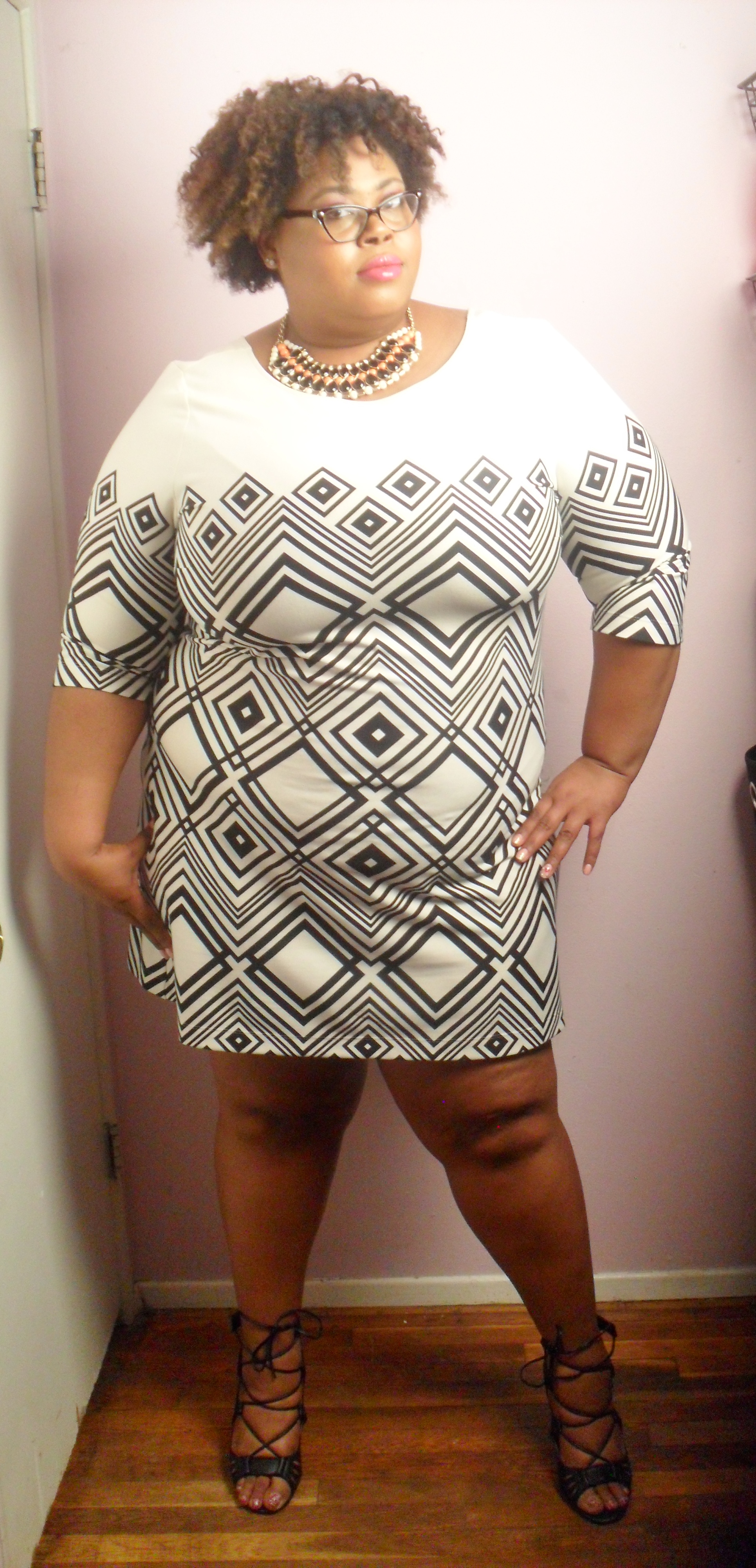 A black and white color palette is both trendy and classic. It was also all over the runways at NYFW 2k15. So, when I saw this Taylor Geometric Shift Dress in ivory and black on Gwynnie Bee, I had to put it in my closet!