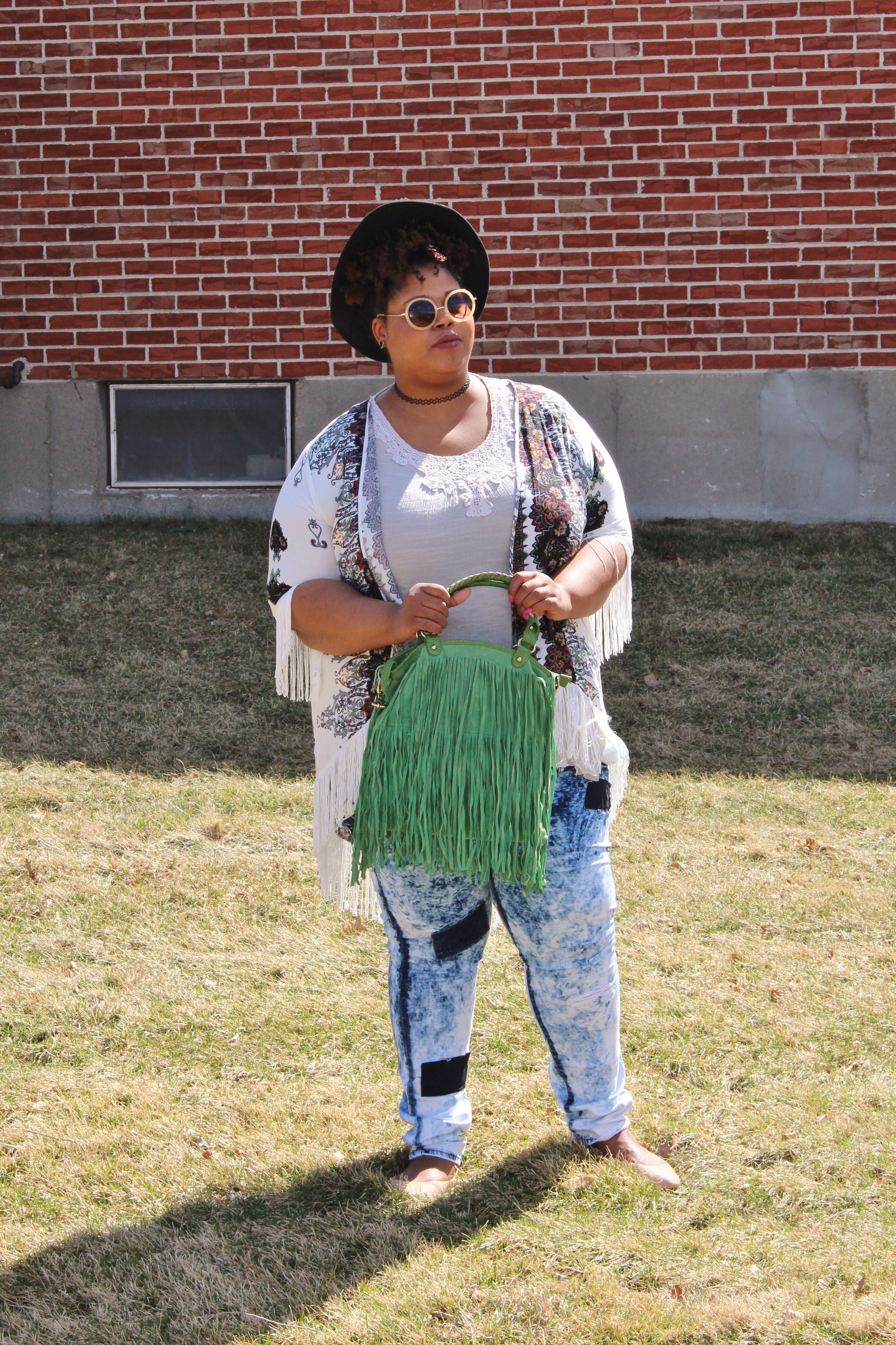 I paired this with a fringe bag and some fun accessories; along with flats because I was just planning to run some errands – no big deal.
