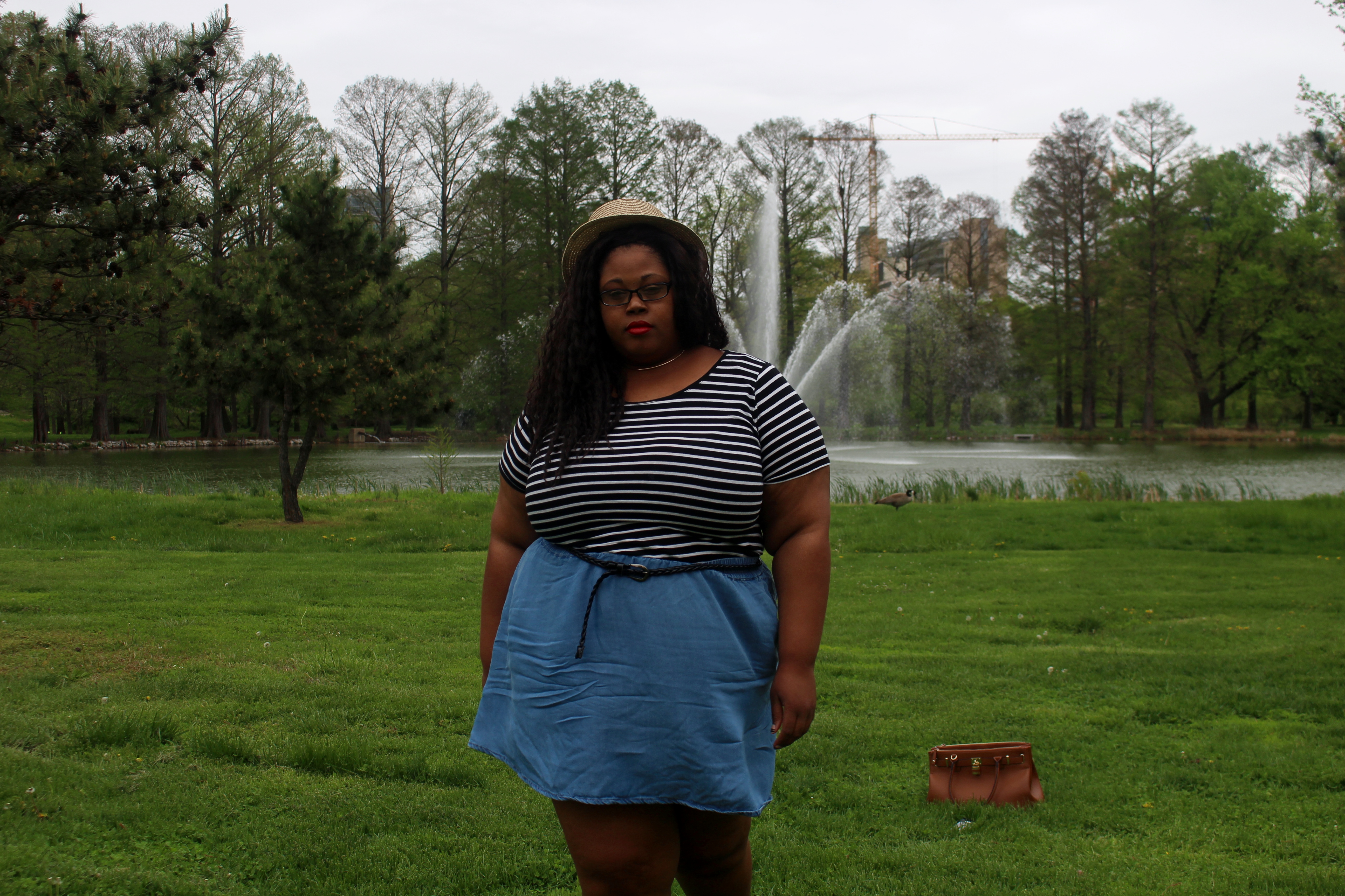 Style notes: Hat, Jewelry, Skirt & Shirt: F21+, Shoes: Nordstrom Rack Bag: Aftermarket Beauty