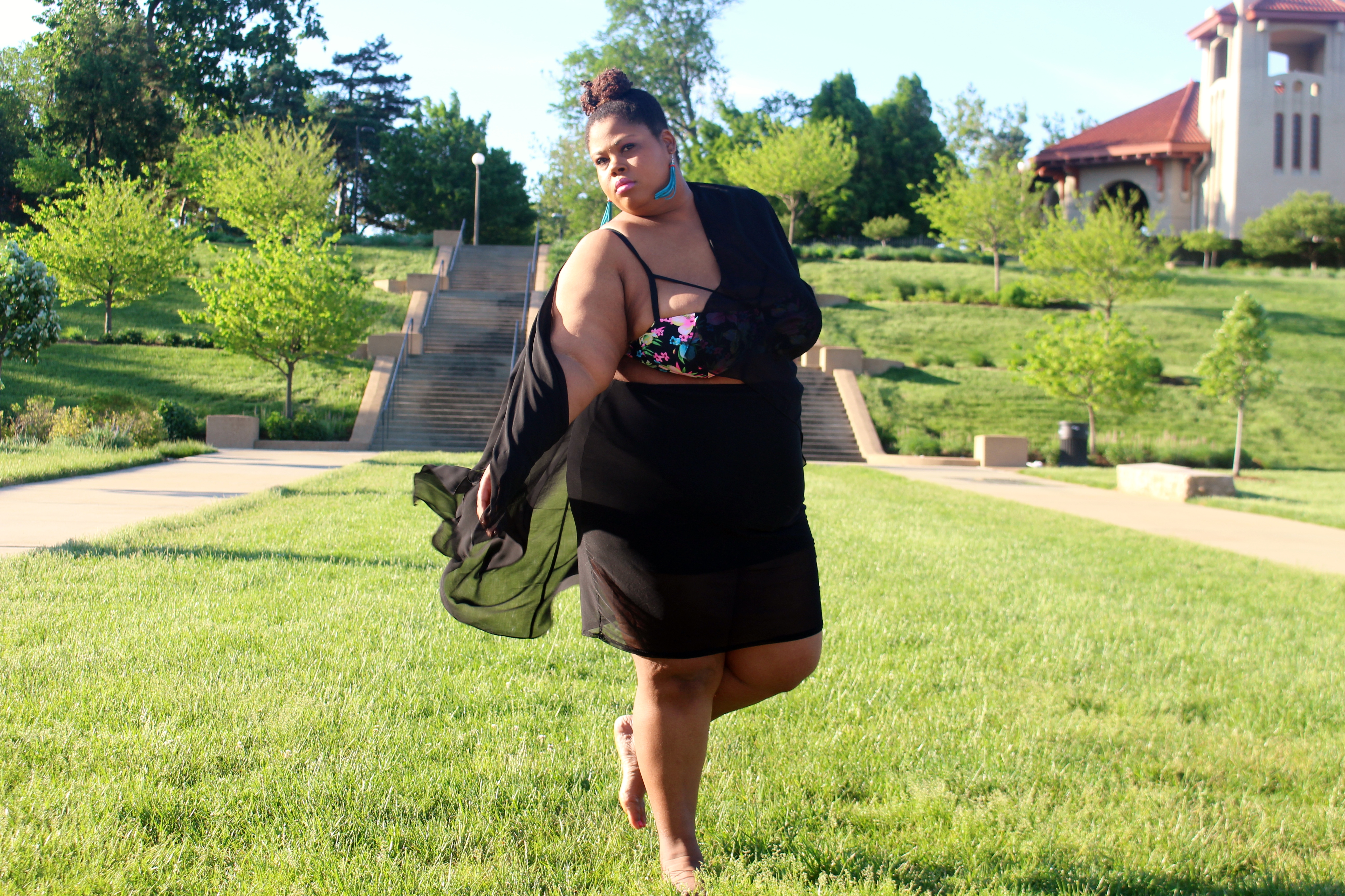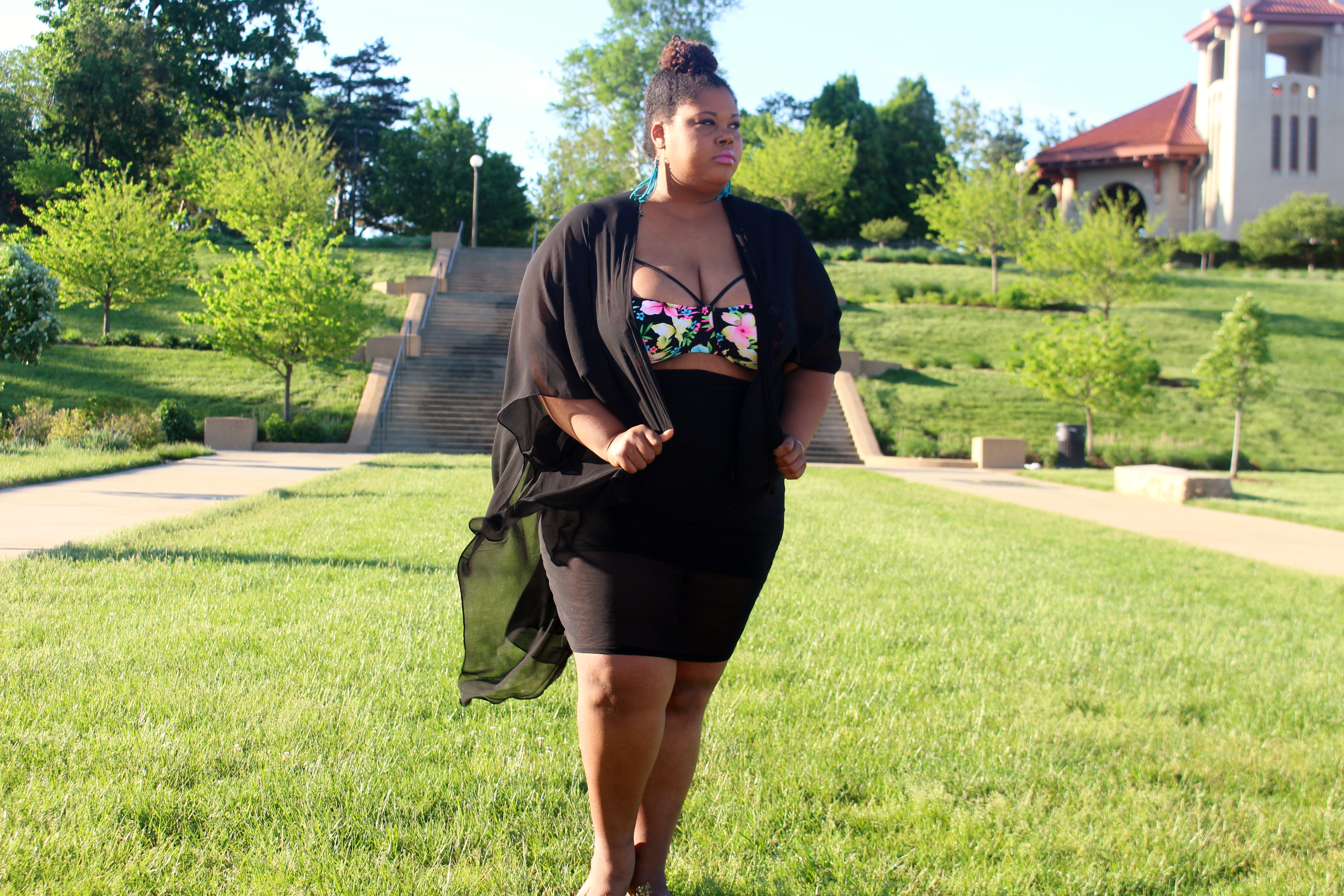 I believe this outfit fits that description quite well. I paired a sheer pencil skirt with a bikini top and a kimono for a nice daytime look. I am not sure if I am throwing this look in my suitcase yet, but I am so tempted.