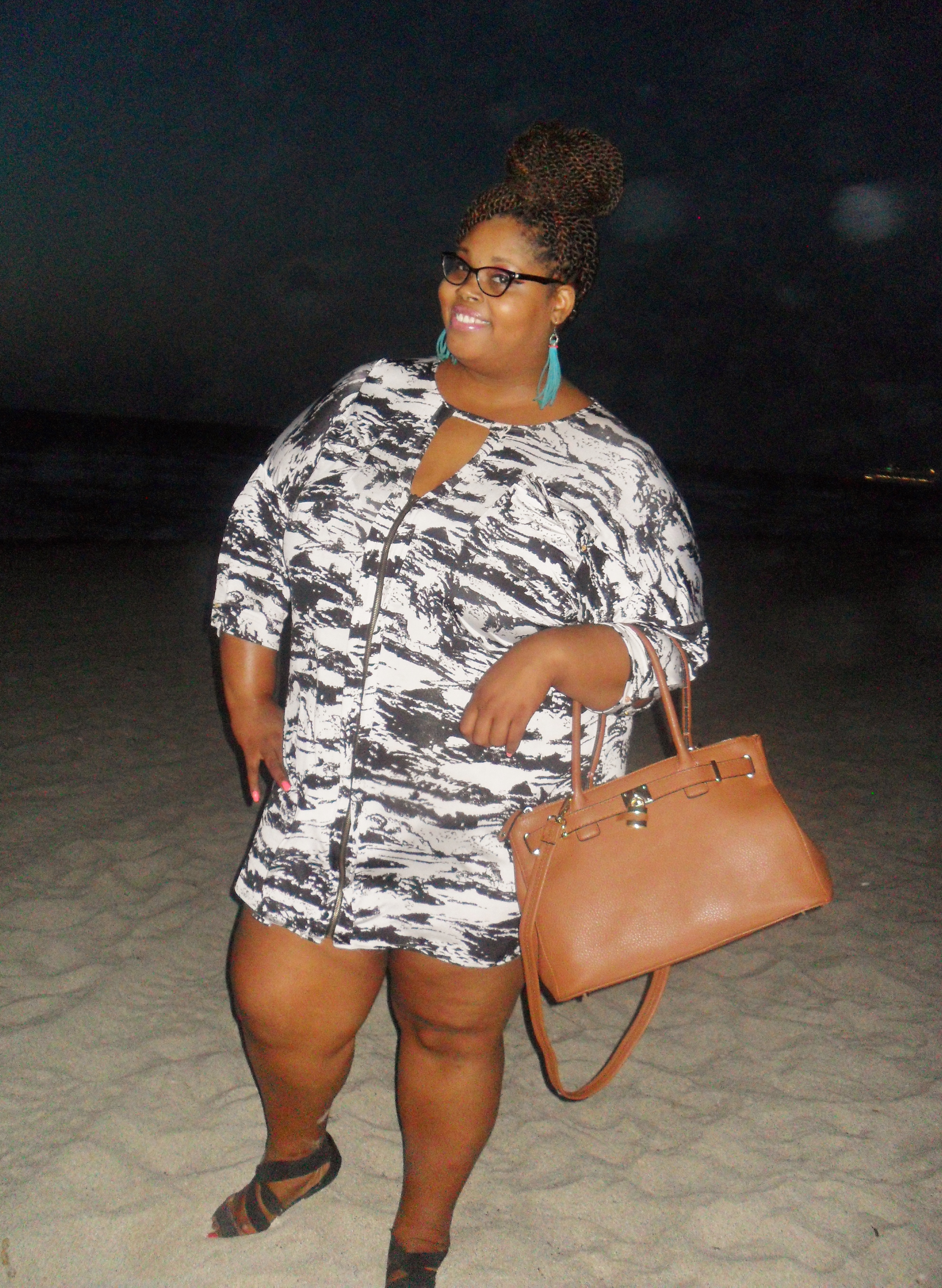 Sweet dreams turns into coffee in the morningStyle Notes: I got the dress via Gwynnie Bee, and I feel ultra-sexy in it. It was missing a button on the pocket, and the hemline was a bit raggedy when I received it, but this is a $250 dress, and the quality still shows. It is a bit short, but perfect with leggings or a leggy night out. I am loving the cutout neckline. I’ll be keeping this one for a while.